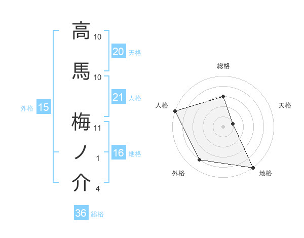 高馬 梅ノ介さんを姓名の画数から五運を鑑定