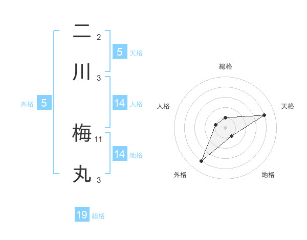 二川 梅丸さんを姓名の画数から五運を鑑定