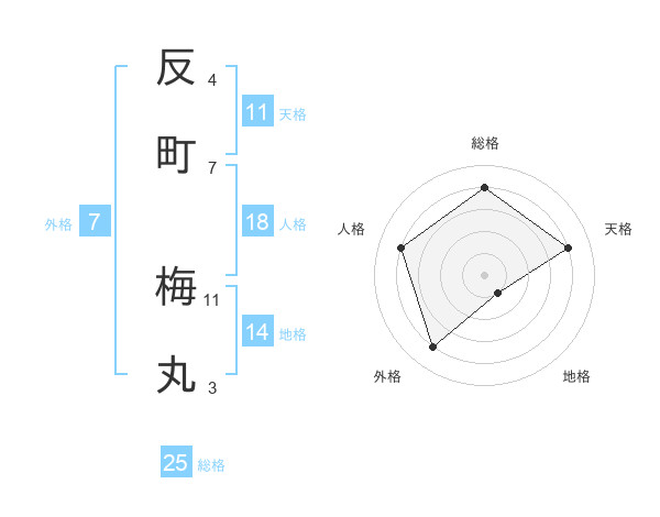 反町 梅丸さんの総格は25画の4点!