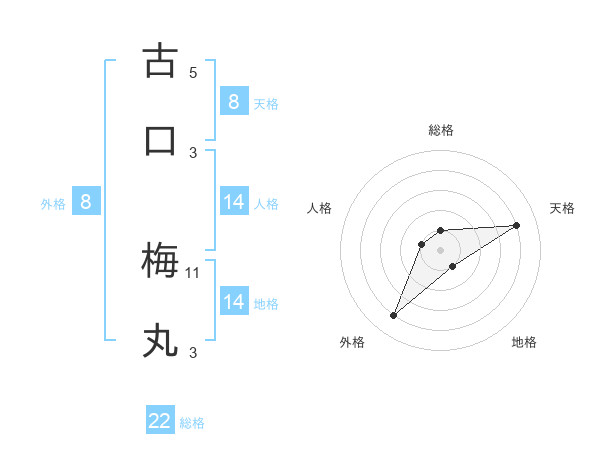 古口 梅丸さんを姓名の画数から五運を鑑定