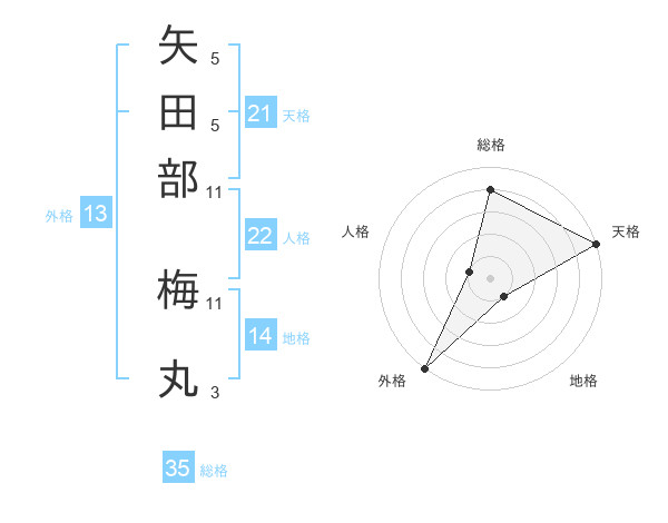 矢田部 梅丸さんを姓名の画数から五運を鑑定