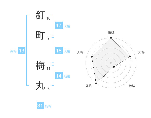 釘町 梅丸さんを姓名の画数から五運を鑑定