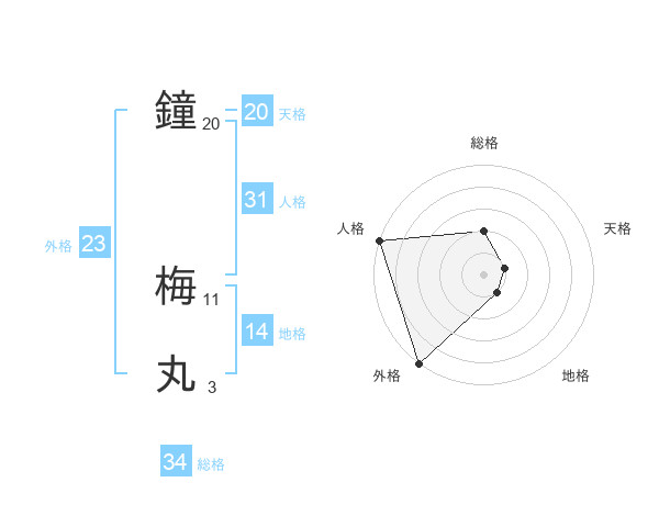 鐘 梅丸さんの総格は34画の2点!