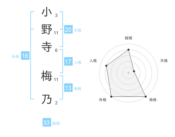 小野寺 梅乃さんを姓名の画数から五運を鑑定