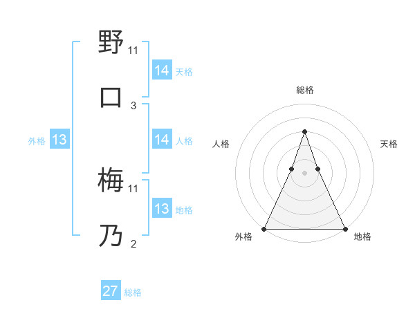 野口 梅乃さんの外格は13画の5点!