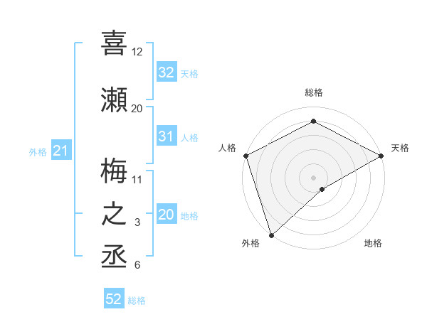 喜瀬 梅之丞さんの総格は52画の4点!