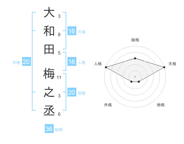 大和田 梅之丞さんの天格は16画の5点!
