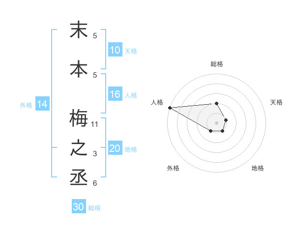 末本 梅之丞さんの総格は30画の2点!