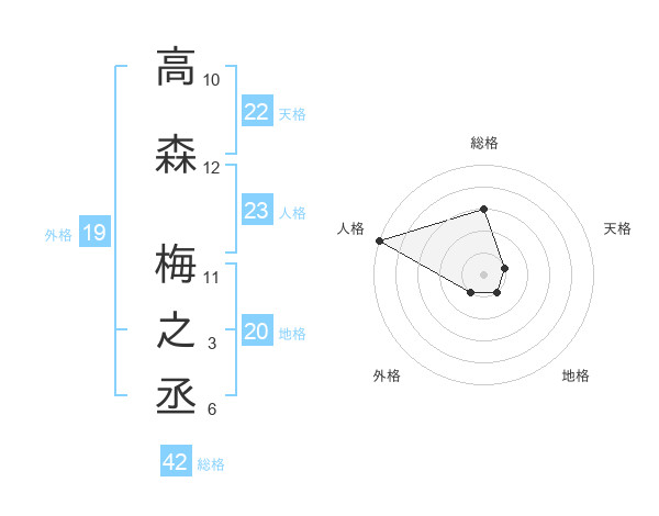 高森 梅之丞さんの総格は42画の3点!