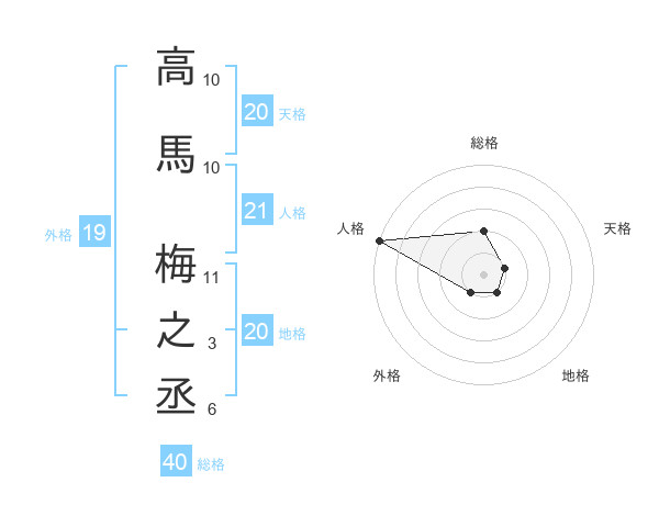 高馬 梅之丞さんを姓名の画数から五運を鑑定