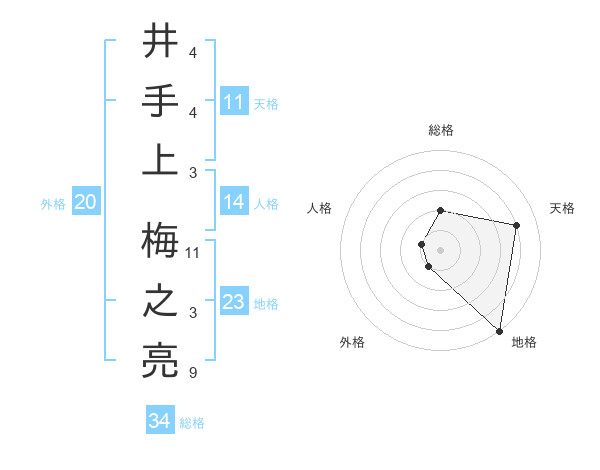 井手上 梅之亮さんを姓名の画数から五運を鑑定