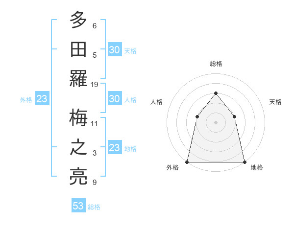 多田羅 梅之亮さんを姓名の画数から五運を鑑定