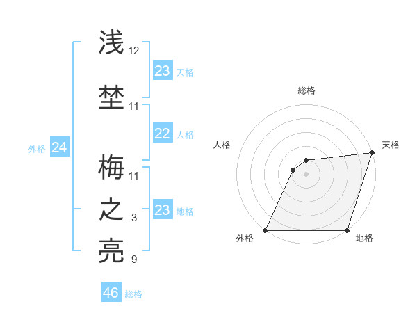 浅埜 梅之亮さんの天格は23画の5点!