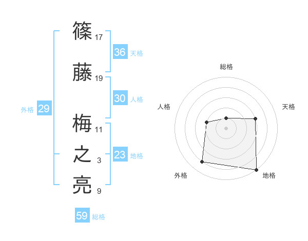 篠藤 梅之亮さんを姓名の画数から五運を鑑定