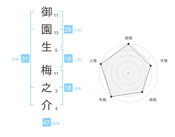 御園生 梅之介さんを姓名の画数から五運を鑑定