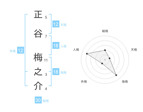 正谷 梅之介さんを姓名の画数から五運を鑑定