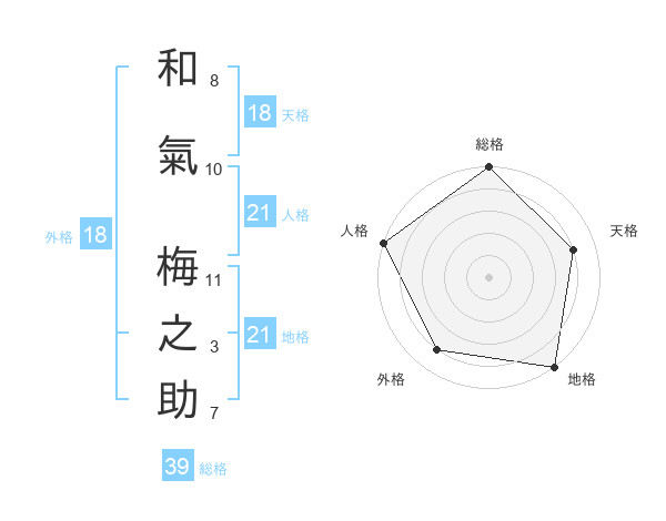 和氣 梅之助さんを姓名の画数から五運を鑑定