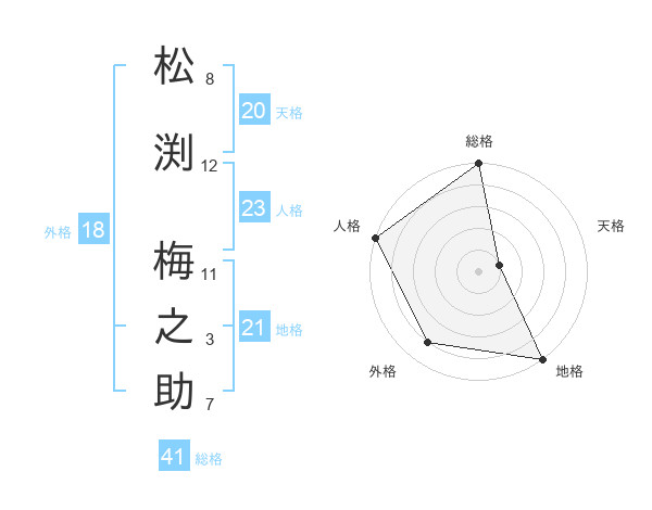 松渕 梅之助さんを姓名の画数から五運を鑑定
