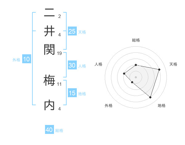 二井関 梅内さんの総格は40画の2点!