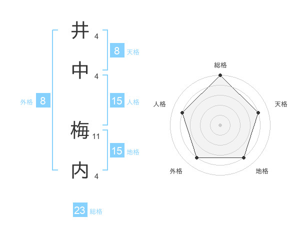 井中 梅内さんの総格は23画の5点!