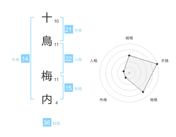 十鳥 梅内さんを姓名の画数から五運を鑑定