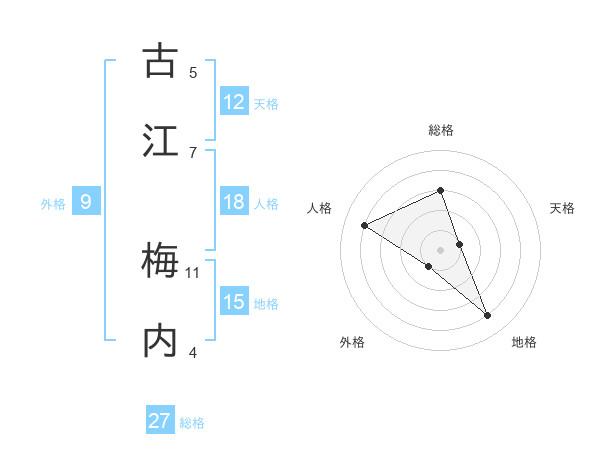 古江 梅内さんの総格は27画の3点!