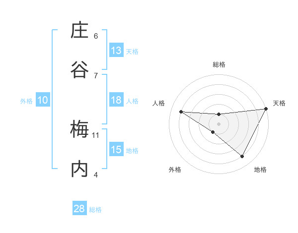 庄谷 梅内さんの総格は28画の1点!