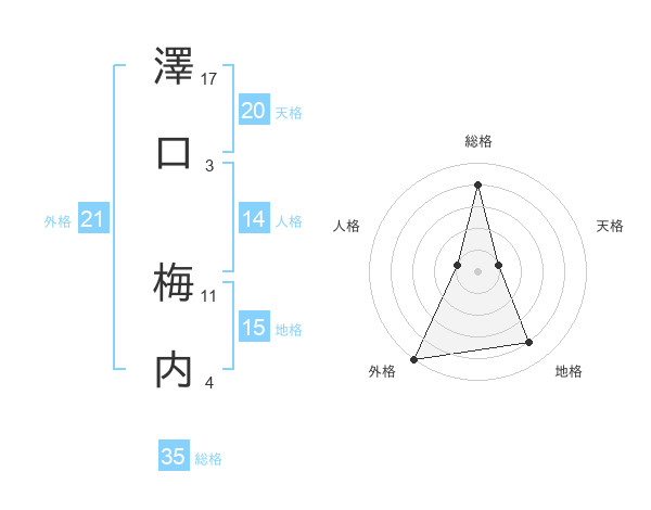 澤口 梅内さんの総格は35画の4点!