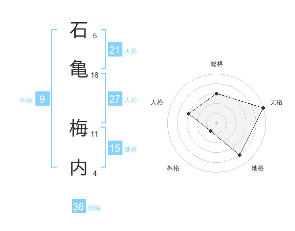 石亀 梅内さんの総格は36画の3点!