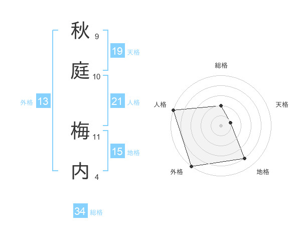秋庭 梅内さんを姓名の画数から五運を鑑定