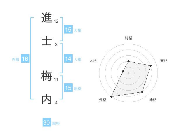 進士 梅内さんの地格は15画の4点!