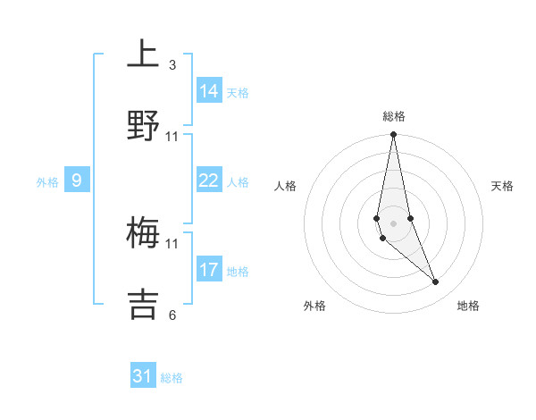上野 梅吉さんの総格は31画の5点!