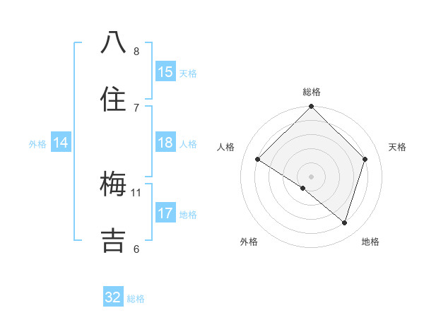 八住 梅吉さんの総格は32画の5点!