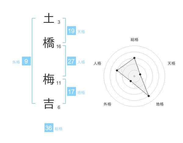 土橋 梅吉さんの人格は27画の3点!