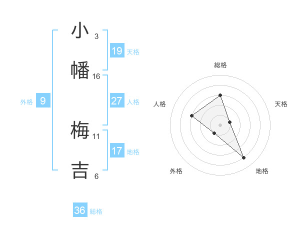 小幡 梅吉さんを姓名の画数から五運を鑑定