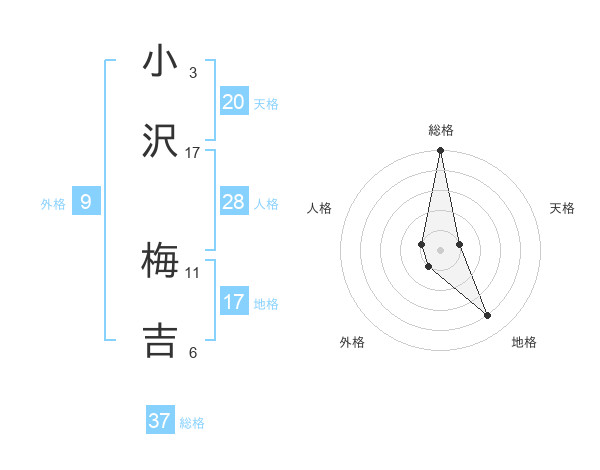 小沢 梅吉さんを姓名の画数から五運を鑑定