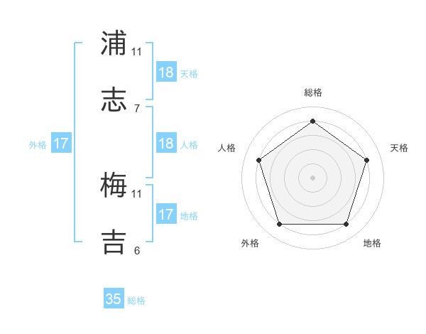 浦志 梅吉さんを姓名の画数から五運を鑑定