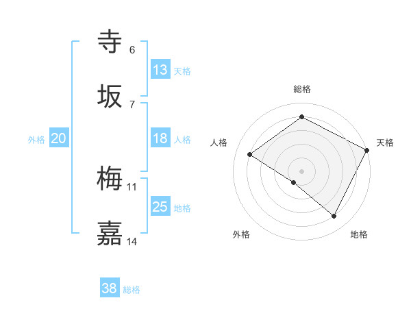 寺坂 梅嘉さんの総格は38画の4点!