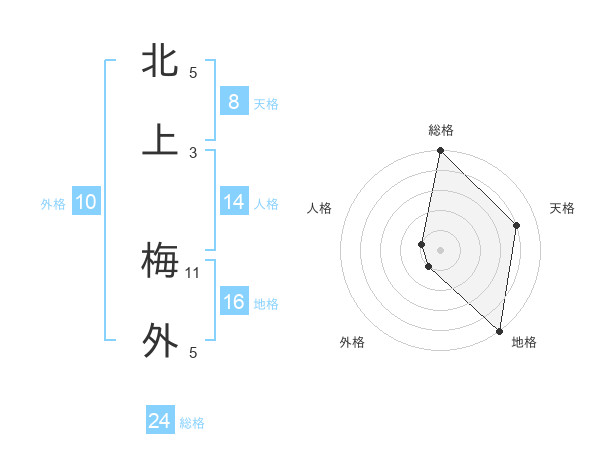 北上 梅外さんの総格は24画の5点!
