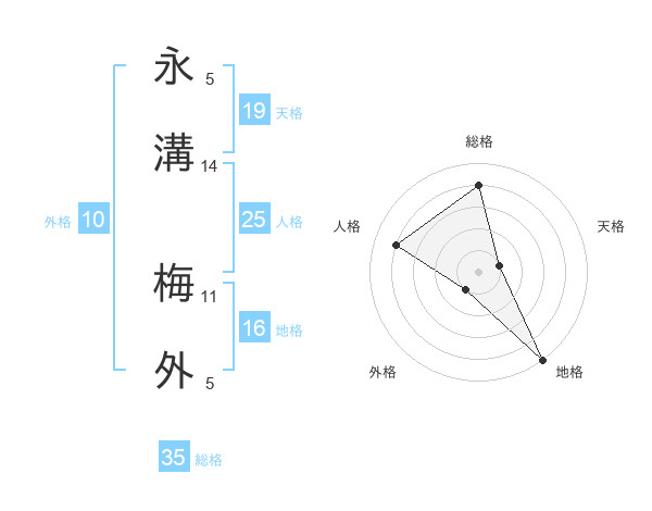 永溝 梅外さんの総格は35画の4点!