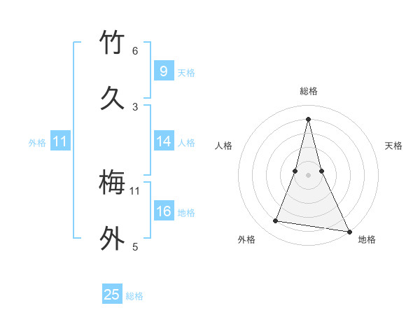 竹久 梅外さんの総格は25画の4点!