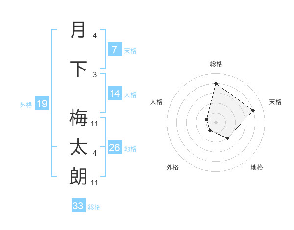 月下 梅太朗さんを姓名の画数から五運を鑑定