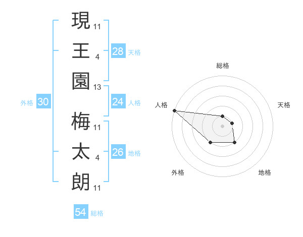 現王園 梅太朗さんの総格は54画の1点!