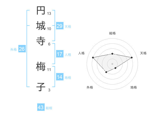 円城寺 梅子さんを姓名の画数から五運を鑑定