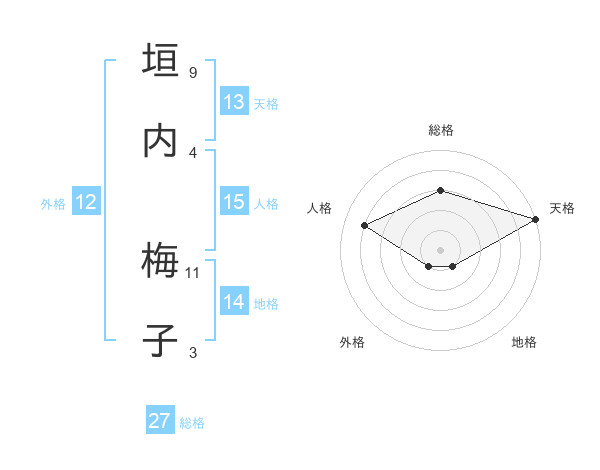 垣内 梅子さんを姓名の画数から五運を鑑定