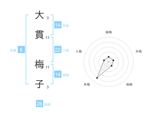 大貫 梅子さんを姓名の画数から五運を鑑定