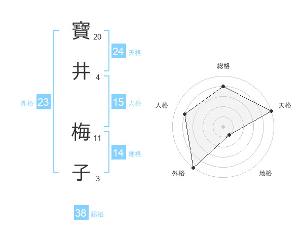 寶井 梅子さんの総格は38画の4点!