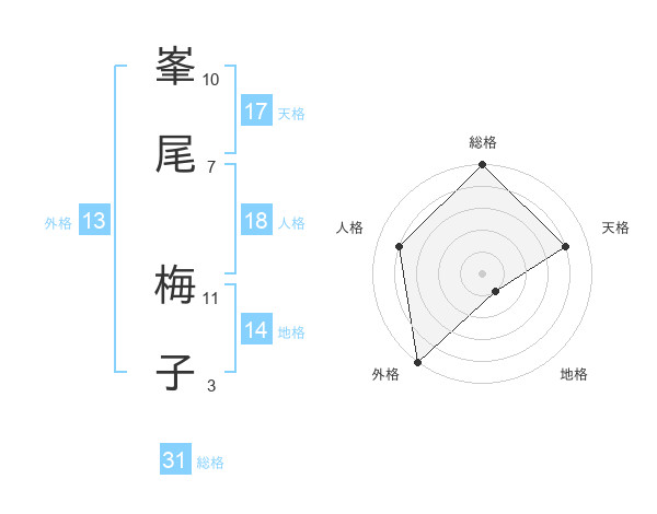 峯尾 梅子さんの総格は31画の5点!