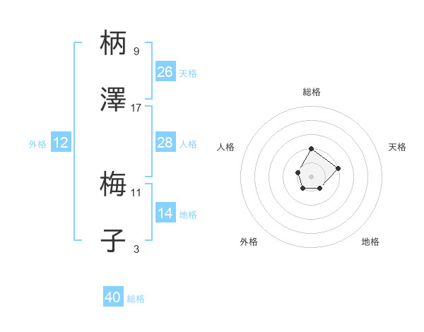 柄澤 梅子さんを姓名の画数から五運を鑑定