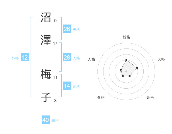 沼澤 梅子さんを姓名の画数から五運を鑑定